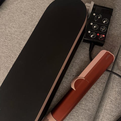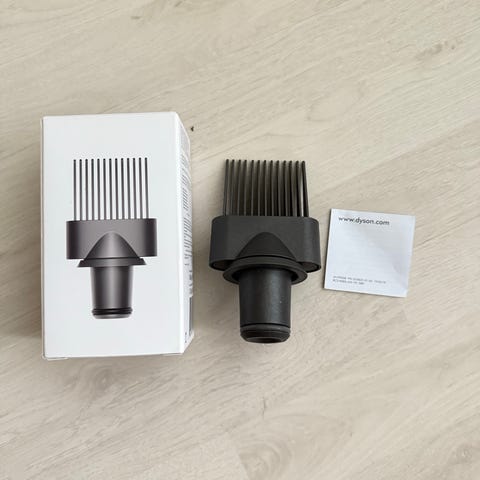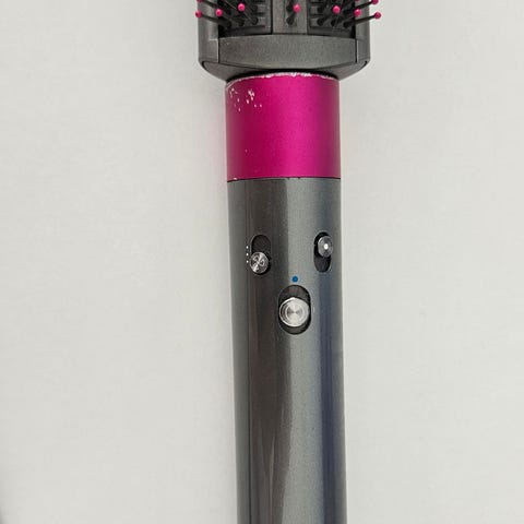 Alkuperäinen Dyson airwrap. Muuten hyvässä kunnossa, mutta fööniharjassa ja kuivaimessa on maalipinnan kulumaa (kuvattu).