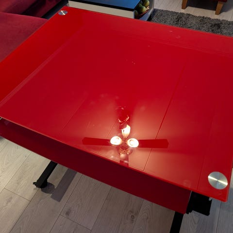 Käytetty toimiva sähköpöytä. Levyssä pientä kulumaa.