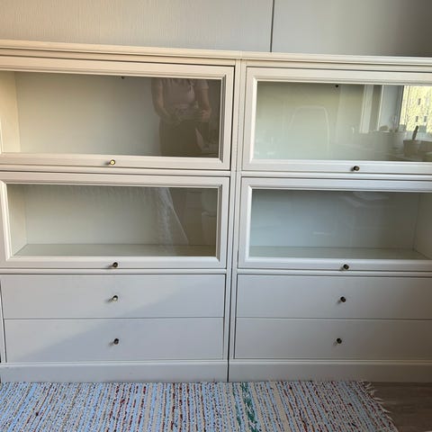 Kolme kuvan mukaista lipastoa jossa sokkelit ja katto sokkelit. Voi myös kasata päällekkäin kirjahyllyksi. Materiaali massiivipuu koivu, petsattu ruskea. Lasiovet ja pölytiivis rakenne. Merkki "Björknäs"