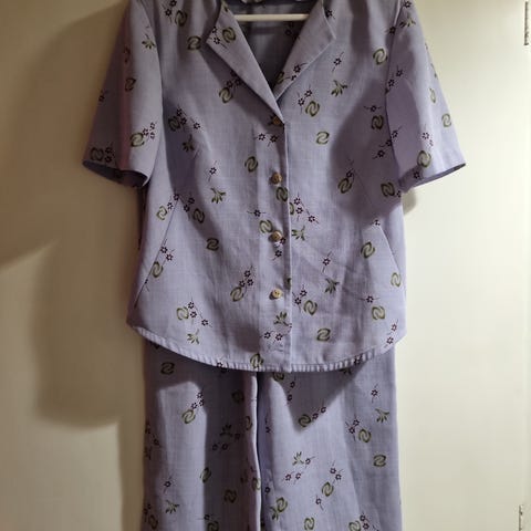 Koko T38 mutta mielestäni vastaa kokoa 36, koska minulle sopiva ja olen kokoa 36.Puseron kainalomitta sivu/ sivu 46 cm, housuissa vyötärö sivu/ sivu 37 cm