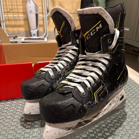 CCM Tacks XF-Pro jääkiekkoluistimet, koko EU 42 (US 7). Väri musta valkoisin yksityiskohdin. Lesti regular. Todella laadukkaat luistimet sekä terät. Ollut käytössä vain 3 kertaa.