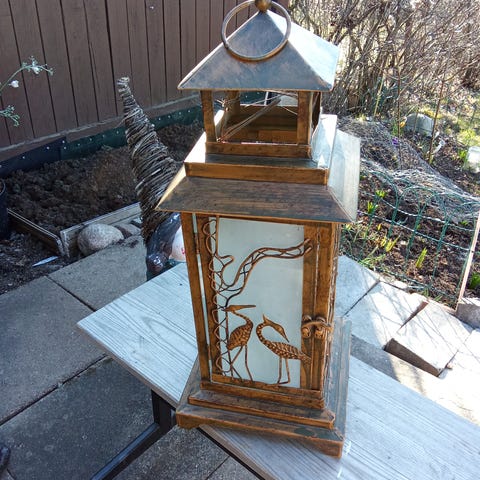 Isoja lyhtyjä, koristeeksi terassille tai parvekkeelle. Sähkökynttilää näissä pidetty. 2 kpl löytyy.