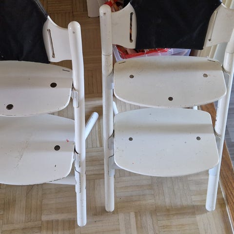 Kuvan mukainen lasten tuoli. Korkeutta voi säätää. Tuoli täysin ehjä, mutta istuinkankaassa käytön jälki näkyy. Nouto Vantaanlaaksosta.