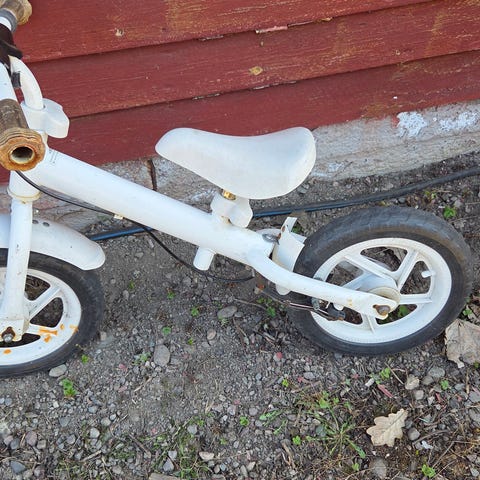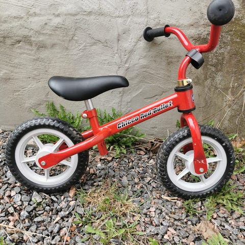Kevyt alumiinirunkoinen potkupyörä säädettävällä satulalla ja ohjaustangolla.
