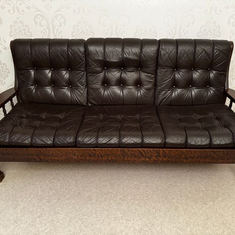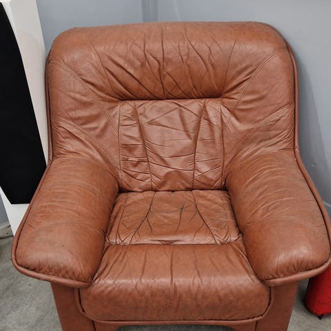 VAIN NOUTO. Nahkaiset nojatuolit, joissa käytön jälkiä käsinojien puuosissa. Muuten suht hyvässä kunnossa. Myynnissä erillisellä ilmoituksella myös samaan sohvaryhmään kuuluva nahkasohva. Nojatuolit voidaan myydä tarvittaessa myös erikseen. Hinta per nojatuoli 70 €, molemmat yhteensä 120 €.