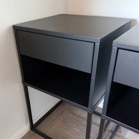 Musta hieman isompi Ikean Vikhammer yöpöytä kivoilla yksityiskohdilla. Vain nouto.