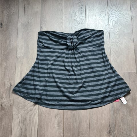 Primakuntoinen toppi. Edessä pienet halkiot, takana vetoketju. Miellyttävä materiaali.