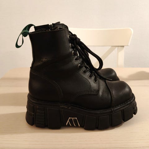 Nämä saappaat ovat muuten hyvässä kunnossa ja vähän käytetyt, toisen saappaan takaa vain on tippunut New Rock - möhkäle pois.