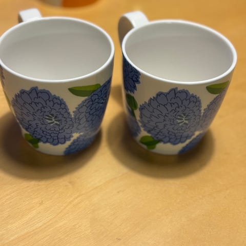 2 kpl Marimekko ”Primavera” mukeja. Maksimissaan pari kertaa ollut käytössä. En huomaa mitään virheitä. Tilavuus 2,5dl.