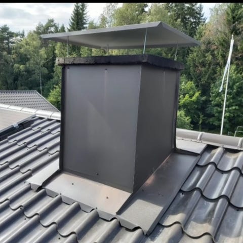 Kesäkeittiön piippu, jossa pituutta n. 324cm ja 90 asteen kulmaosalla n. 99 cm. Itsellä jäänyt tarpeettomaksi. Kunto käytetty, ehjä. Haku Juupajoki.