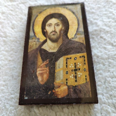 Kaunis ikoni puuta, koko 8 x 10 cm, paksuutta noin 1 cm. Kunto kuin uusi.
