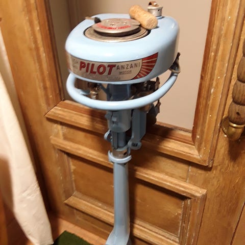 British Anzani perämoottori. Pieni kaksitahtinen perämoottori, jossa metallinen potkuri ja pitkä riki. Moottorissa on yläosassa vetokäynnistin ja polttoainesäiliö samassa yksikössä. Sopii pienten veneiden perämoottorikäyttöön, esimerkiksi soutuveneisiin tai kevyisiin avoveneisiin. Tarkemmat tekniset tiedot, kuten teho, sylinteritilavuus ja paino, eivät käy ilmi kuvista ja on hyvä varmistaa myyjältä.