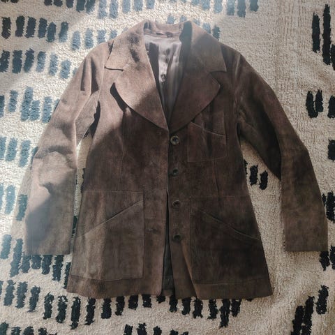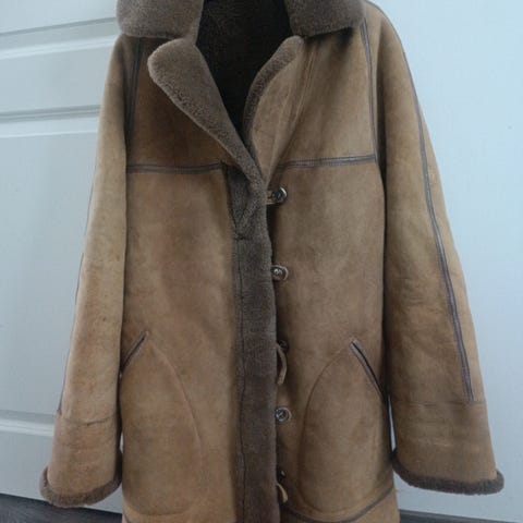 Upea mokkanahkatakki, väri keltainen. Istuu kauniisti. Takissa on nappikiinnitys edessä, kauluskäänteet sekä etutaskut läpillä ja napeilla. Materiaali on nahkaa, sisällä vuori. Erinomaisessa kunnossa. Suomalaista Friitala merkkiä. Takissa lukee koko 38 mutta paremmin sopii koolle 36.