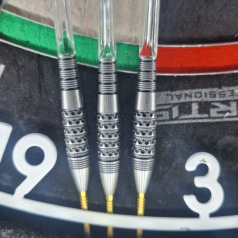 Nathan Aspinallin mukaan suunnitellut huipputikat kuin uutena uudelle omistajalle. Todella vähän heitetty. Mukana saa kuvassa näkyvän Harrowsin säilytysboxin sekä tikoissa kiinni olevat punaiset K-flexit.