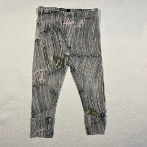 Mini Rodini lasten leggingsit, koko 74. Harmaa väri ja kilpikonnakuosi. Unisex-malli, joustava vyötärö.