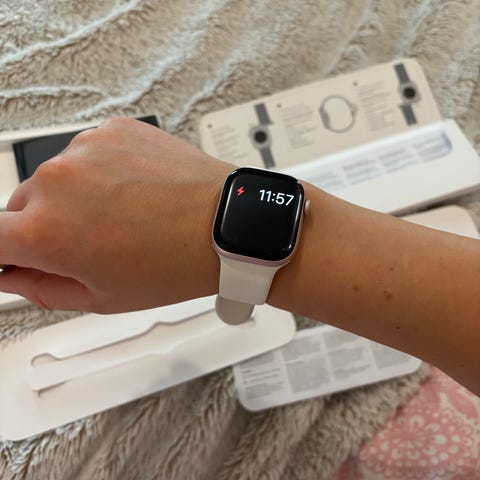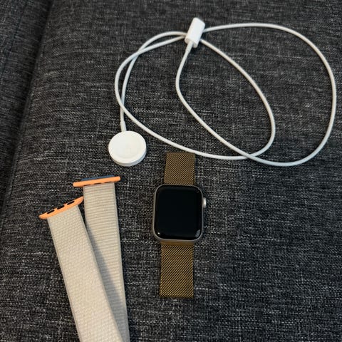 Apple Watch Se älykello valkoisella silikonirannekkeella. Neliönmuotoinen kosketusnäyttö ja yksi sivupainike. Kellon taustapuolella optiset anturit sykkeen mittausta varten. Ranneke on säädettävä ja sopii useimpiin ranteen kokoihin. Sopii yleiskäyttöön arjessa, liikunnassa ja ilmoitusten seuraamiseen yhteensopivan Apple-laitteen kanssa.