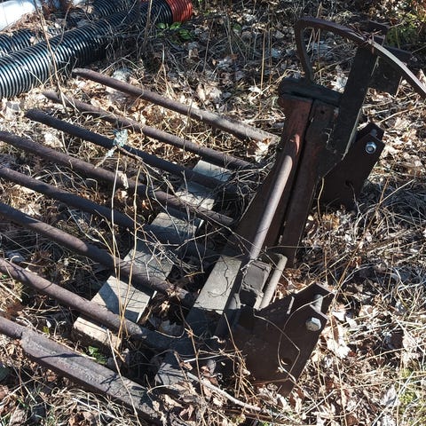 Metallinen traktorin kippaava talikko! Yksi piikki puuttuu,säädettävät lisätolpat 2kpl mukaan.