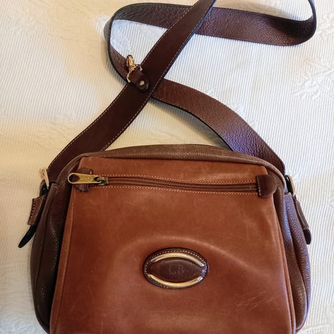 90 luvulta ruskea Goods merkkinen nahka laukku. Aitoa nahkaa. 36x25cm.