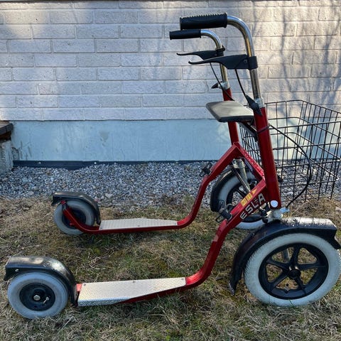 Vähällä käytöllä ollut rollaattori. Varastokulumaa vaan tullu