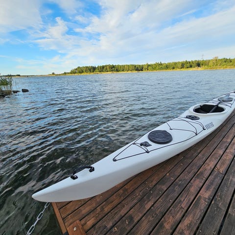 Perception Carolina 12 retkikajakki peräsimellä.