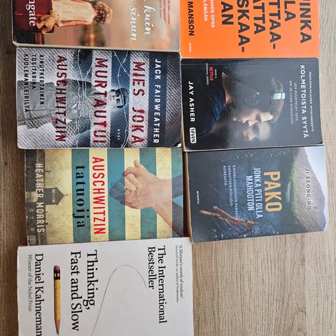 Myytävänä kirjoja ja pokkareita. Hinta 2,50e/kpl ja haku Lappeenrannasta
