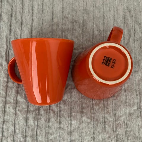 2 kpl hyväkuntoista Arabia Koko mukia oranssissa värissä.