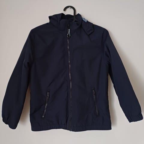 Hienoista kulumaa joissain kohti, varsinkin hihan suissa (kuvia). Ei reikiä ja vetoketjut toimii. Minusta vielä toimivia seuraavalle.