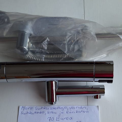 Mora suihkusekoitin kromatulla pinnalla. Termostaattinen sekoitin, jossa erilliset säätimet veden lämpötilalle ja virtaukselle. Soveltuu seinäasennukseen suihkuun. Liitäntöinä kaksi kierreliitäntää tulovesille sekä alapuolinen liitäntä suihkuletkulle. Runko metallia, pinta kromia, moderni kaareva muotoilu.