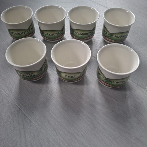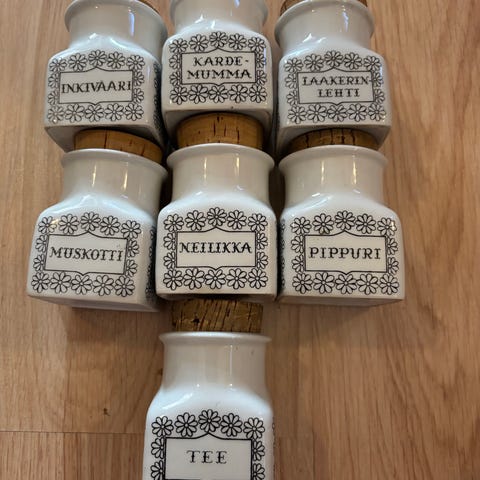 Hyväkuntoinen Arabian käsinmaalattu maustesetti.