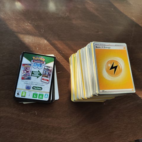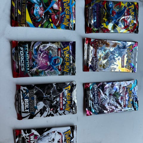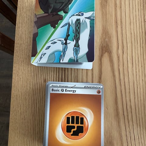 Pokémon energia ja koodi korttien sekapaketti. Pussissa on sekalainen valikoima Pokémon kortteja, mukana pelkästään energiakortteja ja verkkopelikoodikortteja. Kortit ovat perinteisen kokoisia keräily- ja pelikortteja.