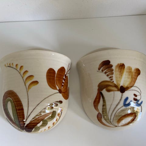 Arabia seinäruukku, jossa käsin kukkakuvioitu koriste. Arabia piippu-leima. Ei toimitusta, vain nouto.