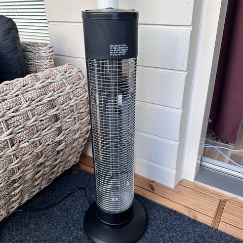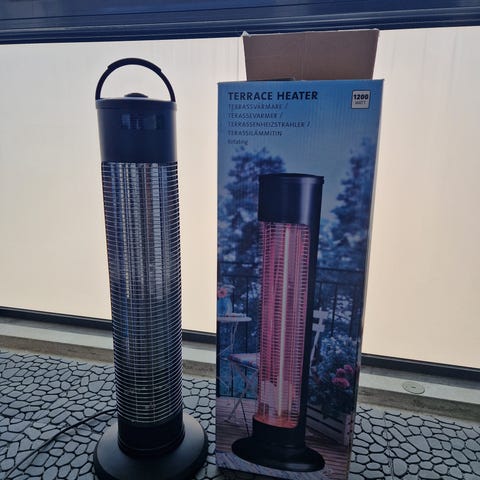 Eurom Golden 1800 Comfort terassilämmitin 1800 W. Sähköinen halogeeniterassilämmitin terassille tai parvekkeelle. Käyttöjännite 220–240 V, taajuus 50 Hz ja teho 1800 W. Laitteessa on metallinen runko ja suojaritilä sekä virtajohto verkkokäyttöä varten. Soveltuu ulkokäyttöön valmistajan ohjeiden mukaisesti. Kunto hyvä. Ei käyttöä kun tuli muutto. Hinta 20e/kpl. Kulkeutuu samassa jättipaketissa nuo molemmat lämmittimet.