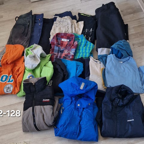 Myydään hyväkuntoinen pojan vaatepaketti, collegepaidat käyttämättömiä. Vaatepakettiin kuuluu: 8kpl pitkähihaisia trikoopaitoja, 5kpl t-paitoja, 3 collegepaitaa, 2 vetoketjullista collegea, verkkatakki, farkkushortsit, urheilushortsit, collegehousut ja fleecehousut.