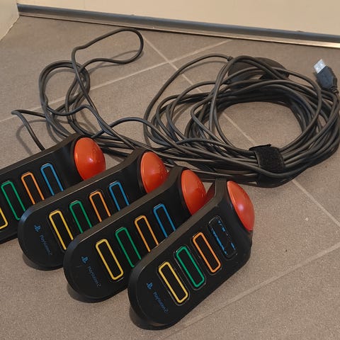 Kaikki ohjaimet ovat täysin toimivia ja niissä on vain pientä käytön jälkeä. Myynnissä myös Buzz-pelit, kysy lisätietoa 👍🏻