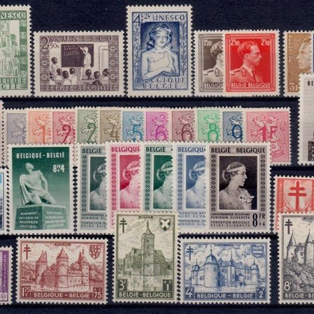 Belgia 1946 - koko vuosikerta kaikkine sarjojen uudelleenpainoksineen - OBP/COB