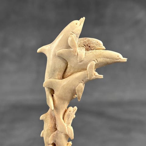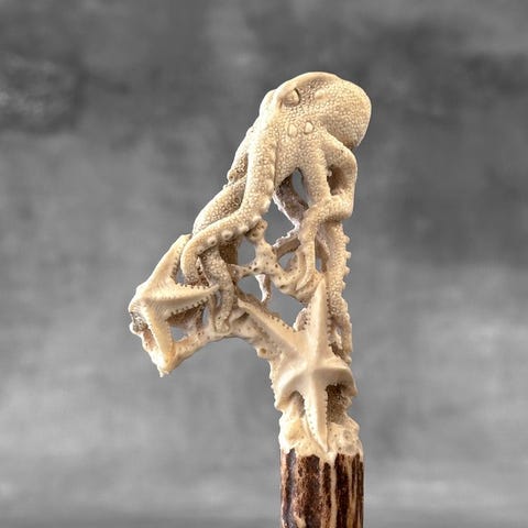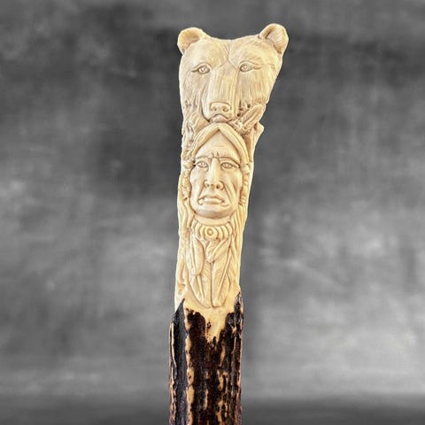 Kaiverrus, Stunning Native American with Animals Totem Carving from a Deer
