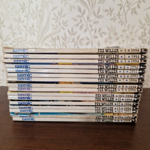 Myydään kuvassa oleva siistikuntoinen täysi Tex Willer 2001 vuosikerta (1-16). Ei osoitelappuja tai hintalappuja.