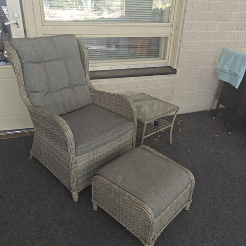 Myydään tilan puutteen vuoksi 2kpl Parolan rottingin mustaksi maalattuja nojatuoleja. Tuolit ovat käytettynä ostettu muutama vuosi sitten ja ovat olleet tämän jälkeen käytössä lasitetulla parvekkeella. Tuolit ovat edellisen omistajan toimesta maalattu mustaksi.