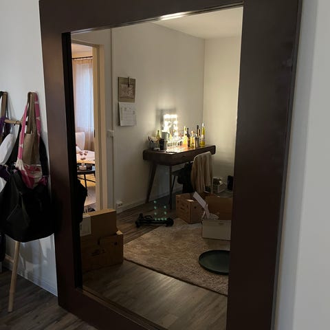 Kaunis Klassikko, Habitat Luella peili. Takana todella tukevat kiinnikkeet joilla saa ripustettua seinään kiinni. Peili ei ole koskaan ollut seinässä meillä kiinni, kuin uusi.