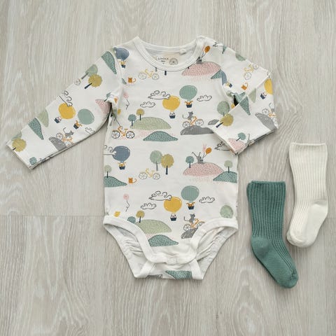 Kappahlin kesäasu / romper, koko 74 ja kahdet Polarn O. Pyretin puuvillasukat, koko 16-18