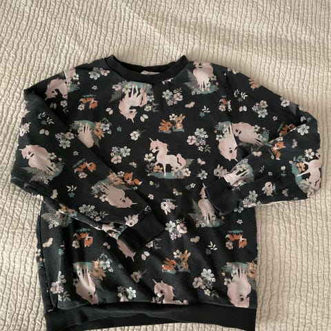 Siistikuntoinen ja pehmeä tyttöjen collegepaita. Kaunis värikäs kuosi, resorit kauluksessa, hihoissa ja helmassa. Mukava päällä arjessa, päiväkotiin tai kouluun.