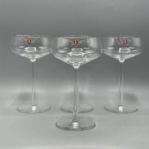 Myynnissä kuusi juomalasia, kaunislinjainen kaadin (ei kahvaa ja levenee hieman alaspäin, joka poikkeaa valtaosasta samalaisia myynnissä) ja pieni maljakko. Lasit ja kannu mahdollisesti Maire Gullichsen Nuutajärven lasi / Iittalaa, herkkää ja minimalistista muotoilua. Maljakko on Björn Weckströmin Nuutajärvelle suunnittelema Fortuna.