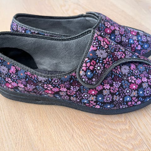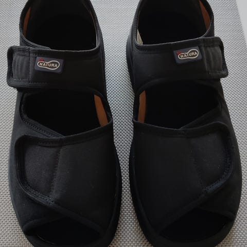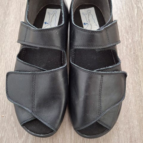 Säädettävä tarrakiinnitys, pehmeä ja hengittävä päällinen. Pitävä pohja, korkea ja laaja lesti. Konepestävä. Koko 40.