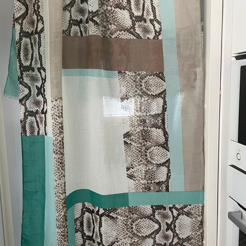 Myydään 2 pitkää kapeaa huivia 150x35cm, sinisävyinen meriaiheinen 75x75cm 2€/kpl, ruskeasävyinen silkkihuivi 53x53cm 3€, sekä kesähattu koko S/M 2€