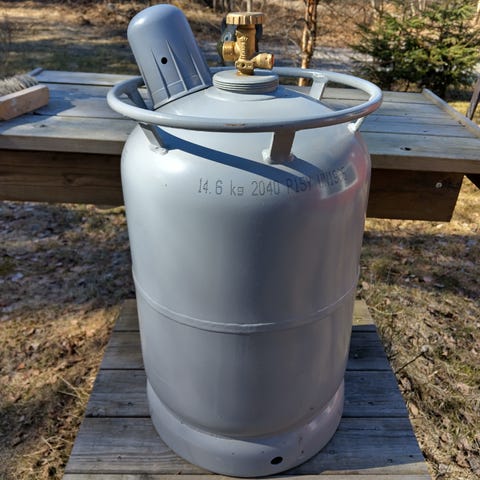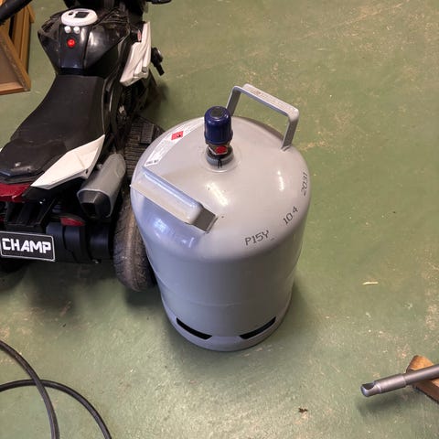 Täysi kaasupullo, kokonsa puolesta helppo kuljetella, pitää varapullona kotona, mökillä, veneessä tai karavaanihommissa.