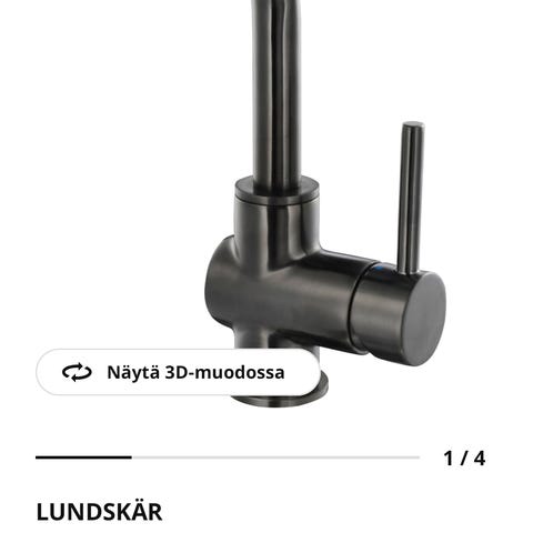 Musta yksiote keittiöhana. Hana on korkea ja kaareva, ja siinä on sivulla vipuhana veden lämpötilan ja voimakkuuden säätöön. Soveltuu keittiöön tai kodinhoitohuoneeseen tavalliseen vesiliitäntään.HUOM ei APK liitäntää