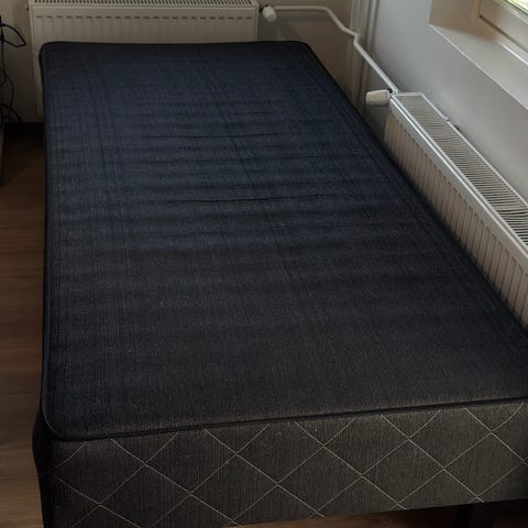Valkoinen yhden hengen sänky. Puurakenteinen, molemmissa päissä päädyt. Pientä kulumaa maalipinnassa jossain kohtaa, mutta yleisvaikutelma siisti. Sopii 80x200cm patjalle