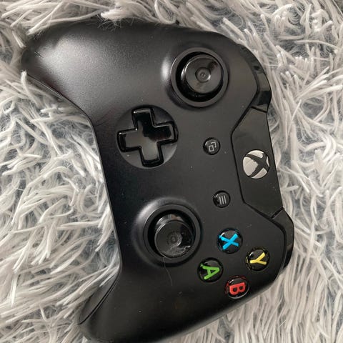 Xbox One langaton ohjain hienolla värityksellä. Muuten toimiva ohjain, mutta RB nappi ei meinaa kunnolla ottaa, voi ehkä alkaa toimia normaalisti myös avaamalla ja puhdistamalla napin kohdan. Postitus onnistuu.