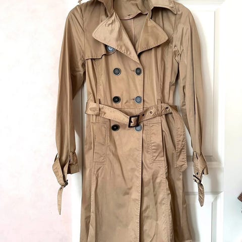 Hyvässä kunnossa oleva Guessin vaalea trenssitakki mustilla yksityiskohdilla ja vyöllä jossa takana niitit. Nouto Oulusta, myös postitus onnistuu.