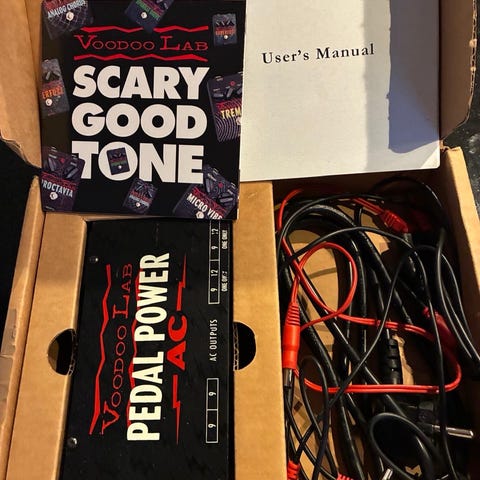 Harmittaako, kun pedaalit vinkuu ja rätisee? Voodoo Lab Pedal Power 2 Plus on häiriötön virtalähde. Laitteessa on useita 9V- ja 12V-lähtöjä sekä SAG lähdöt 2kpl wah ja fuzz -pedaaleille, joilla voi simuloida Kuolevan pariston ominaisuuksia. Kaikki alkuperäinen mukaan, mitä laatikosta on löytynyt. Virtalähteen pohjassa hieman liimajäämiä velcrosta, muuten MINT.